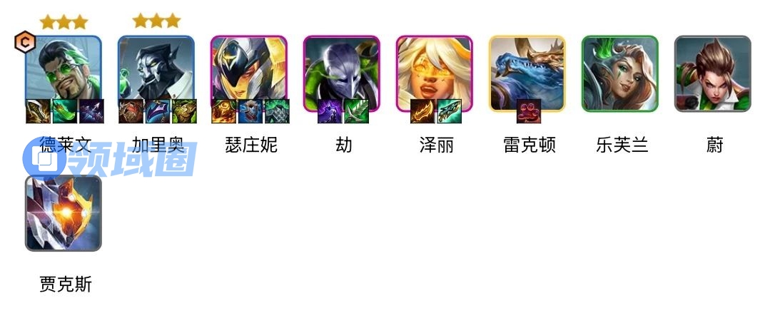 德莱文、加里奥、瑟庄妮、劫、泽丽、雷克顿、乐芙兰、蔚、贾克斯