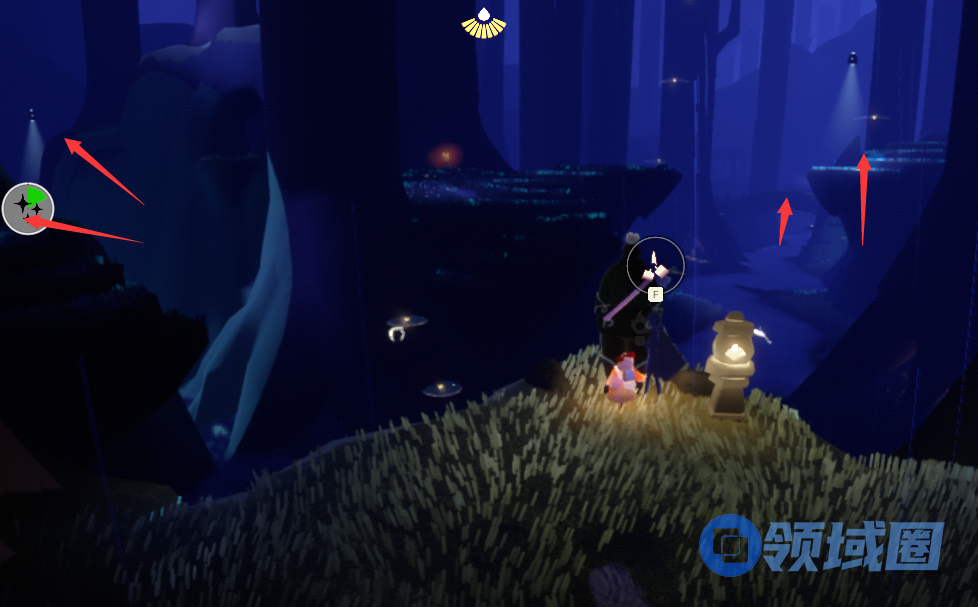1、进入青鸟剧场,通过云巢或遇境的向导传送,也可在秘密花园打坐前往,打坐前往任务点。