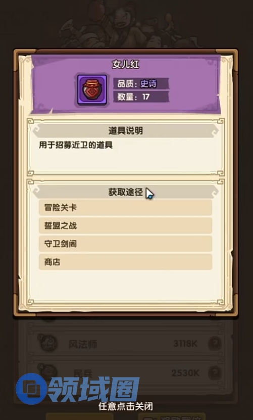 在游戏的推图过程中,关卡挑战奖励和掉落是女儿红的主要来源之一,从第一章到第三章,每次通关关卡有几率掉落女儿红,而从第四章开始,掉落数量提升至2个 ,在第一章的某些关卡,玩家凭借出色的策略和排兵布阵成功通关后,系统便会给予女儿红作为奖励,并且随着章节推进,后续关卡不仅掉落数量增加,掉落概率也会有所提升,需要注意的是虽然掉落概率并非100%,但通过持续不断地挑战关卡,积累的女儿红数量依旧相当可观。