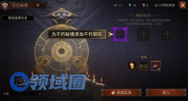1、不朽秘境:使用强化不朽钥石通关不朽秘境,即有几率掉落传奇宝石狂热之牙。