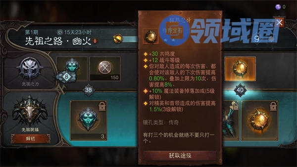 3、先祖之路:在40级可以解锁获得传奇宝石狂热之牙。