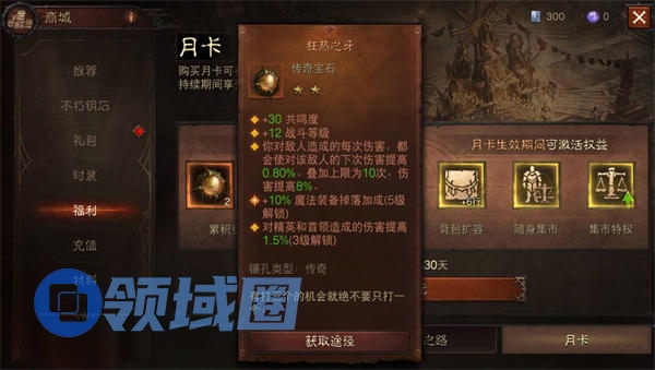 4、月卡:购买月卡,即可立即获得两个传奇宝石狂热之牙。