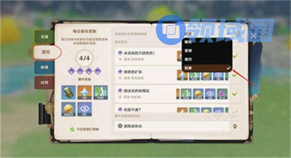 2、选择委托任务,再把地区改成稻妻;