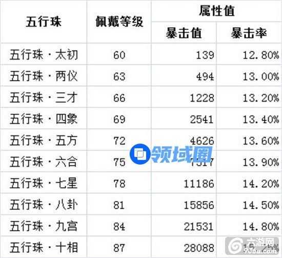 作为最受欢迎的附属属性,唯有五行珠可以提供高额的暴击值。