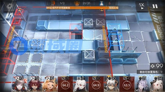 5、当击败一整个波次的敌人后,场上会划分出即将移出视野的危险区域,随后地图也会右移并进入下一波次,而危险区域内的干员会在波次转换时自动撤退。