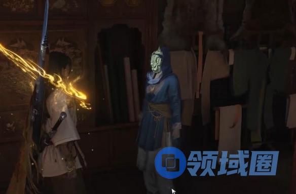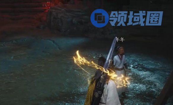 3、出门右拐直走,找NPC【万俟安山】对话拿到剑穗;