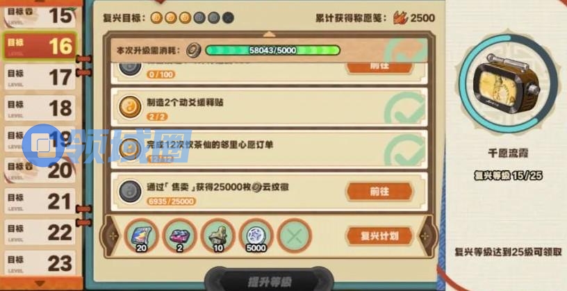 1、完成复兴任务:通过完成一系列复兴任务,可提升「随便观」的等级,解锁更多功能和奖励。