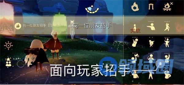 站在好友面前使用招手动作。先点击中上方的光之翼,然后选择招手动作即可完成。