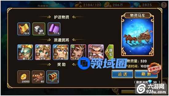 2、 【护送物资】:选择不同的马车护送物资,马车越高级奖励越丰厚