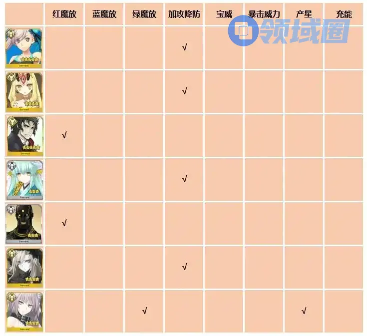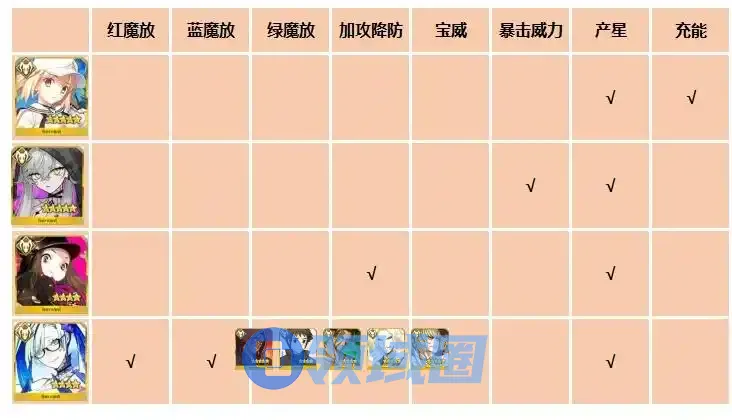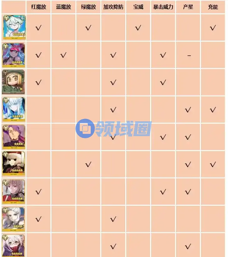 反而是增伤效果比较重要,尤其是冠位战也要配合打暴击,所以产星和暴击威力提升效果也是蛮重要的,敌人只有一面,所以降防在这里也是有用的。
