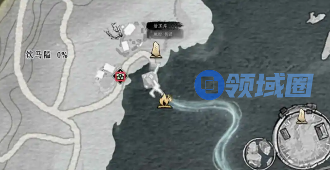 任务条件:詹解锁河西区域后,抵达饮马隘附近有概率触发任务。任务地点:1饮马隘界碑左下方。