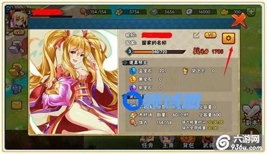 游戏的设置可以通过,点击主角头像,然后箭头指示的地方点击即可。