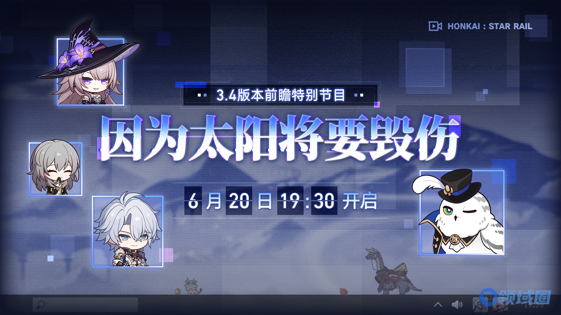 《崩坏:星穹铁道》3.4版本「因为太阳将要毁伤」前瞻特别节目将于6月20日19:30正式播出。