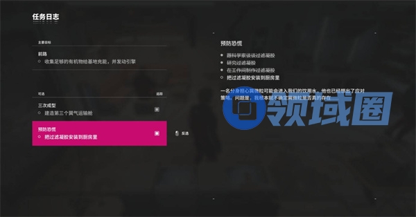 当你获得“预防恐慌”任务后,游戏会提示制作过滤凝胶以安抚事件进展。但此时请注意: