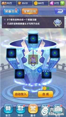 宝物合成在33级开放。5个紫色宝箱可以合成出一个精华宝石,精华宝石又可以用于宝物的进阶。这个游戏很多道具都不仅仅是出售这一种消耗方式的,很多时候玩家不用的道具也可以变废为宝的。合成就是资源回收再利用的过程,我们的目标是:没有浪费!