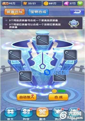 合成功能在游戏中作为更高品质装备的重要来源之一,在游戏的初期,也就是玩家的新手阶段就做了装备合成功能的强制引导。
