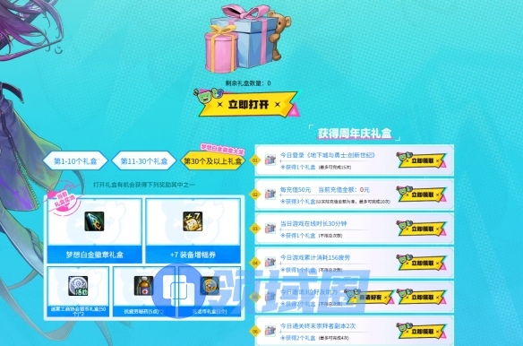 3、完成界面的指定任务可获得【周年庆狂欢礼盒】,打开礼盒能获取不同的奖励;