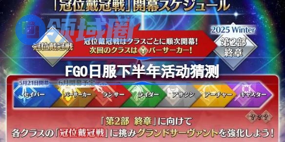 以上就是FGO日服下半年活动猜测的全部内容了,希望玩家可以顺利的知道有哪些活动,更多精彩内容请关注领域圈游戏。