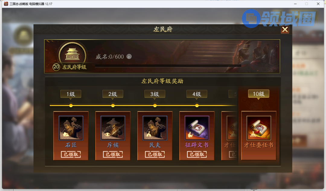 落地修建左民府后,前期只能选择一个才仕,左民府5级开通第二个才仕,左民府10级开通第三个才仕。