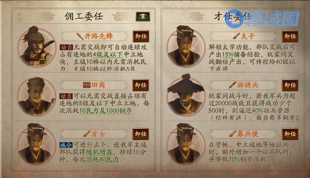 以上就是领域圈游戏为大家带来的三国志战略版佣工才仕系统怎么玩解答,大家都了解了吗?还想要了解更多的内容那就请继续关注领域圈游戏吧。