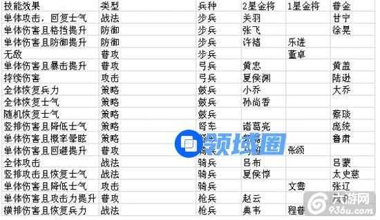 1) 关羽:2星金将,绝技回怒气放得快,输出稳定,有肉又有输出,如果没有2星金色肉盾武将,则选关羽,早中后期皆宜攻守兼备,技能回怒,即是稳定输出,又能做第2肉盾。
