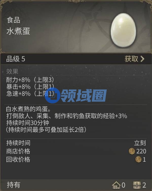食物加成:所有食品均提供+3%经验,别忘了开局赠送的水煮蛋。