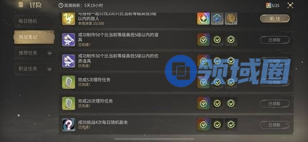 每周更新的挑战笔记提供额外经验与道具奖励,覆盖内容包括:
