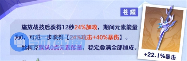 雾切之回光也很好用,因为丝柯克的元素能量恒为0,很容易稳定触发雾切的两层增伤效果,大招流玩法也能叠出三层增伤,泛用性强。