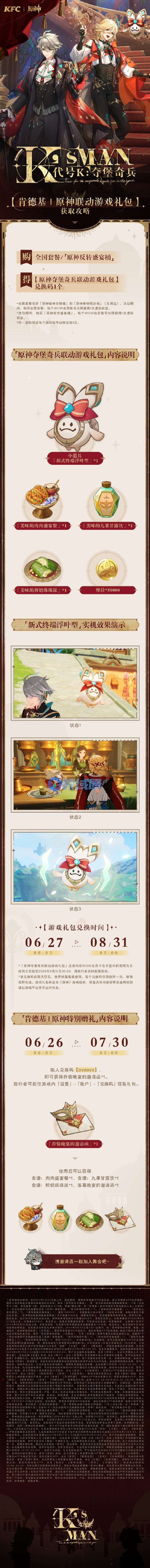 原神即将开启全新的联动,这次的肯德基联动活动在6月27日正式开始,这次的肯德基联动大家知道要怎么玩吗?下面为大家带来的具体内容,感兴趣的玩家们千万不要错过哦!