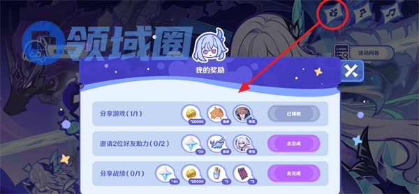 3、点击【分享游戏】,可解锁助战角色达达利亚及活动壁纸
