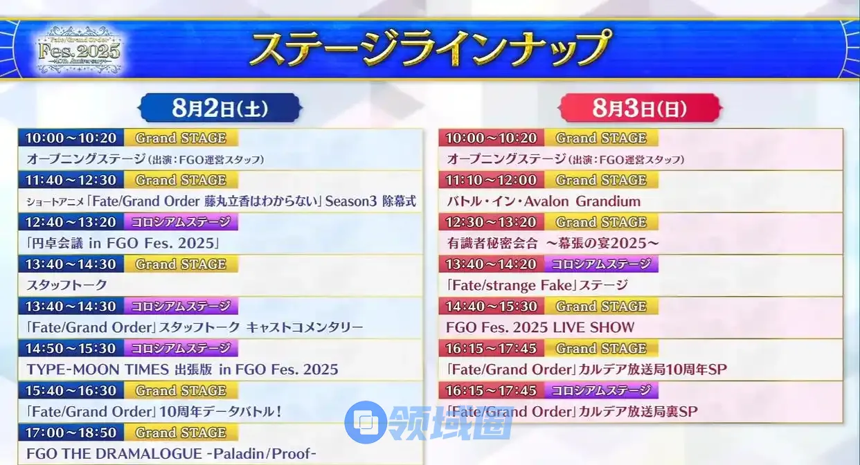 以上就是FGO日服十周年庆典节目单一览的全部内容了,希望玩家可以顺利的知道这次有哪些新节目了,更多精彩内容请关注领域圈游戏。