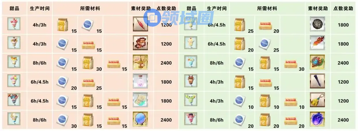 制作甜品需要一定的时间,并且同一时间制作的种类有限,可以随时补充制作数量,制作的最大时间不超过24小时,也可以终止当前制作改成别的,终止的话尚未制作材料会返还。