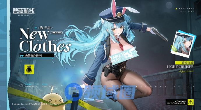 本次即将推出的新皮肤隶属于SSR稀有的科研船海王星,其具体的换装名为'兔警官办案中!'参上~将于下次维护后限时上架登场!