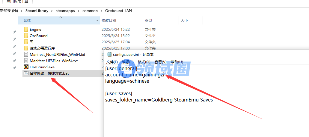 双击游戏目录下面的名称修改,快捷方式.bat,找到“account_name=gaimingzi”,把“gaimingzi”改成自己想要的名字,保存。