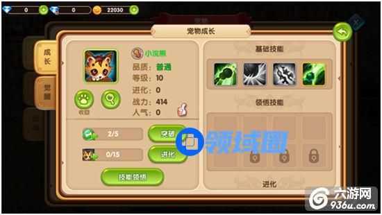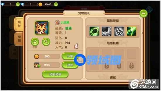 点击宠物详细信息可以对宠物进行升级、进化操作喔;