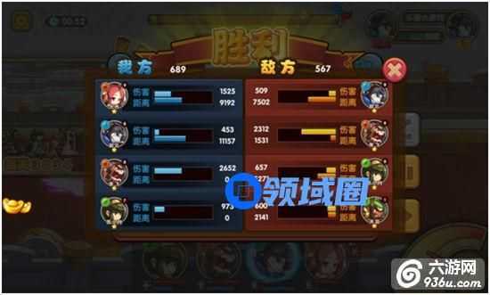 战斗结束后,在结算面板中点击柱形统计图标也可以查看本场的输出情况和带队距离,根据数据再去排兵布阵!