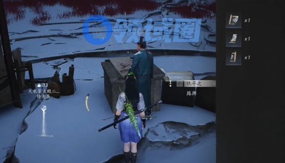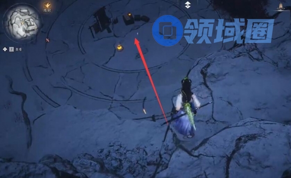 4、返回到【天水集】这里向左边走可以看到一个莲台,在里面的发光点拾取第一个。