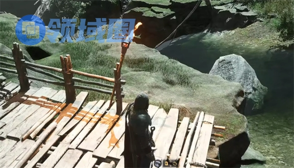 来到一处木板桥附近,会自动触发与NPC的交互事件。