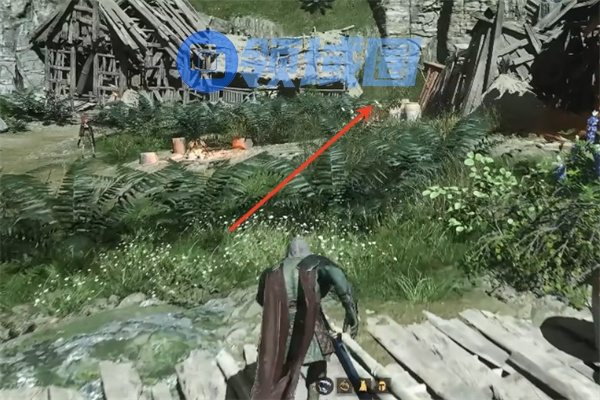 与NPC对话后,根据地面箭头指示,绕过旁边坍塌的建筑。