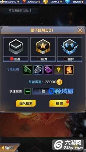 探索量子信息需要花费少量金币,每日系统也会赠送一定的免费探索次数,每日凌晨3:00重置。量子信标分为3个区域,每个区域有3个等级,普通,困难,噩梦。您可组队进行探索也可自己进行探索。组队可将消息发送到世界聊天和军团3个或者2个战队一起挑战,胜算更大哦。