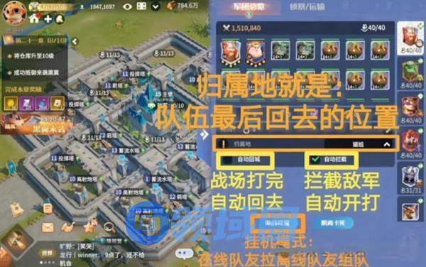 ②自动回城:队伍打完仗,这些队伍自动就回城了。建议:关闭自动回城。