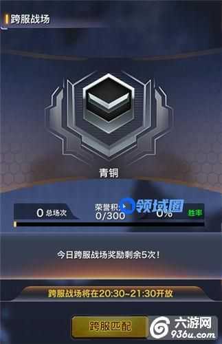 跨服战每日20:30—21:30开放一个小时,开放期间,玩家可以和其他玩家实时对战,系统会自动匹配实力相当的对手,每天参加跨服战总共可以获得5次奖励(无论胜负),之后再参加跨服战,每次可获得1000金币和荣誉积分。