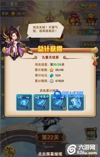 小星星大威力,上面说到在保证通关的情况下,尽量挑战高难度的关卡,其实是为了收集更多的星星,还会获得更多的仙玉。星星是做什么的,其实挑战一次九重天就知晓了,在九重天中,每三个关卡之后就会有宝箱和buff关卡,而星星就是用来在buff关卡中购买强力buff用的。所需星星数越多的buff,属性加成就越高呢!