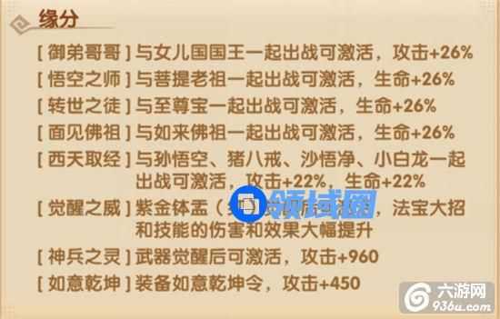 御弟哥哥:与女儿国国王一起出战可激活,攻击+26%