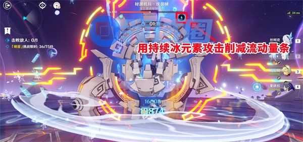 汇集水元素仙力时,需冻结+碎冰/融化破防倒地。