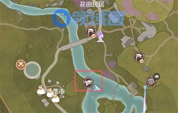 首先,传送到下图所示区域,地图上标记有巨型画帽鸡的位置。靠近即可看到体型庞大的画帽鸡雕塑。
