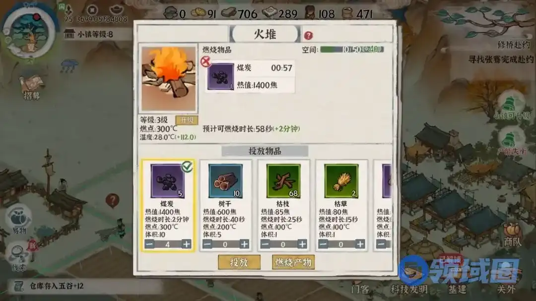 所有可燃物具备燃点,投入火堆可生成特殊资源或负面效果