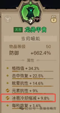为达成本套搭配的效果,必须要在暗能胸甲与护腿两个位置洗练出共计14%以上冰雹冷却缩减。因此,胸甲与护腿必须至少有一件为太古品质,且另一件至少也需要达到远古品质,通过洗练洗出接近拉满的冰雹冷却缩减,才能满足本套搭配的基本要求。