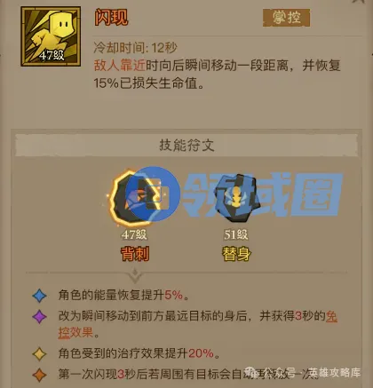 掌控1:闪现-背刺(背刺提高能量恢复与治疗效果,且频繁位移能显著提升生存能力)