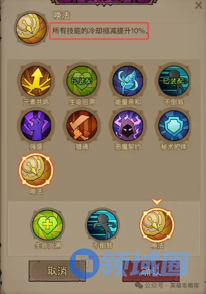 被动:必须携带减少技能冷却的唤法,其他两个位置按需更换